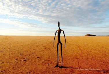 « Pour aimer profondément le pays, il faut avoir passé des mois à suivre des routes rectilignes, à tressauter sur des pistes rouges en forme de tôle ondulée pour se retrouver au beau milieu de nulle part, quelque part entre le vent, les mouches et les petits dragons qui observent l’intrus en train de s’agiter. Là, vous n’êtes qu’un passager du temps, voguant entre préhistoire, immensité vierge, et oasis décadentes, hantées par des ombres aborigènes, en marge du développement. J’aimerais vous inviter sur ces pistes du Rêve pour ressentir ces immensités rouges, l’étrangeté des paysages, la solitude du voyage, le miracle des rencontres improbables».