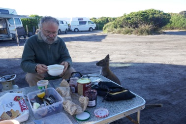 Petit déjeuner en bonne compagnie, dans le Parc de Freycinet