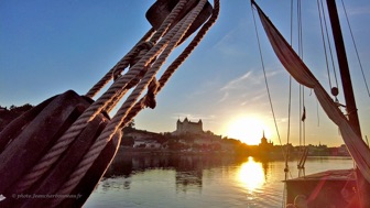 Arrivée à Saumur, sur une toue de "Terre et Loire"