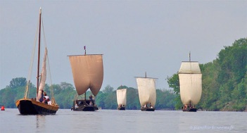 Bateaux traditionnels arrivant à la fête du Thoureil (49)