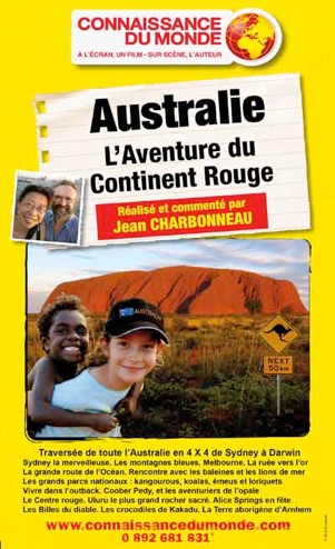 “Australie, l’aventure du continent rouge”, le fruit d’un an de séjour, de 70 000 kilomètres parcourus au volant d’un 4 X 4, pour vous entrainer de Sydney à Darwin, en passant par Melbourne, Kangaroo Island, Coober Pedy, Alice Springs, à la rencontre des paysages, des animaux typiques, de quelques Australiens originaux et des Aborigènes.