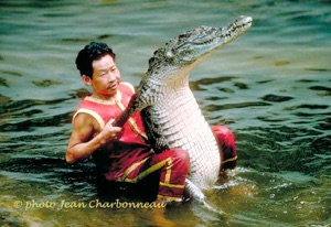 Un veau indien avec deux pieds sur le dos; un ascète Sri Lankais pendu par des crochets enfoncés dans la peau. Portrait thaïlandais avec un python autour du cou et repas de chiens, serpents, abeilles et scorpions.